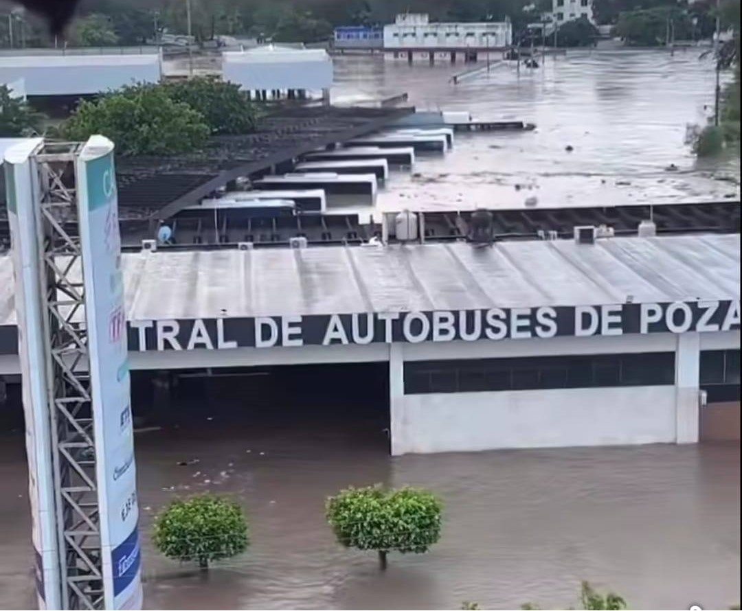 Poza Rica despierta inundada: central de autobuses colapsa por fuerte acumulación de agua