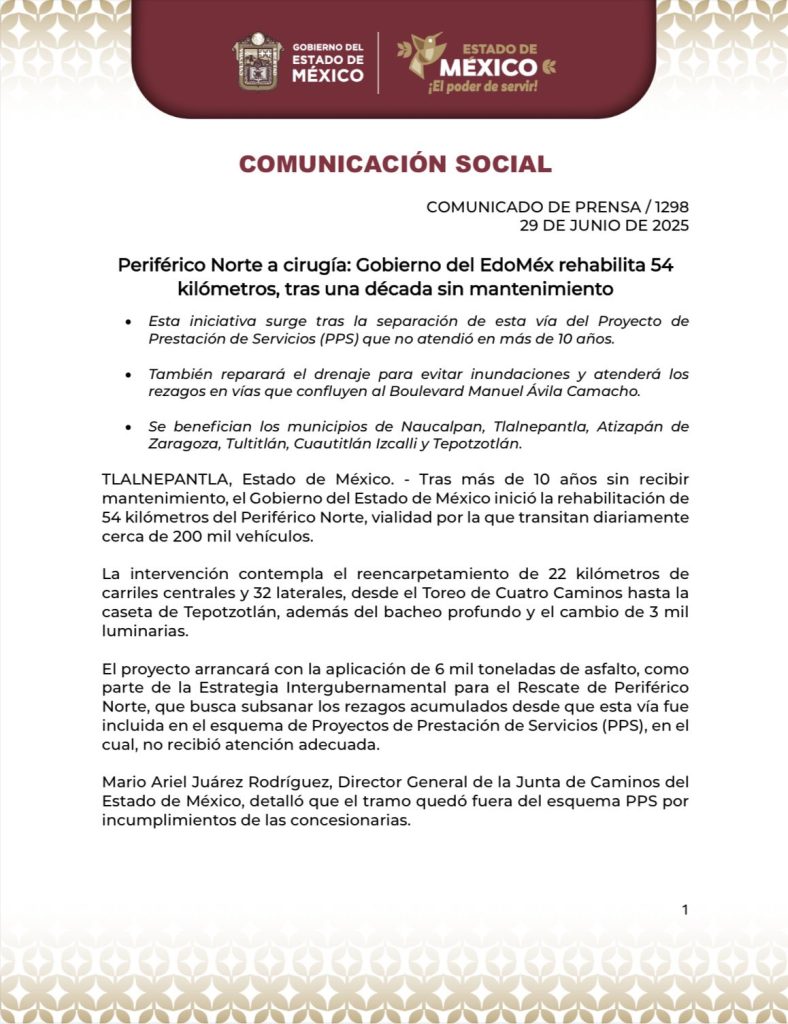 🚧 Inicia la rehabilitación del Periférico Norte: 54 km en renovación total