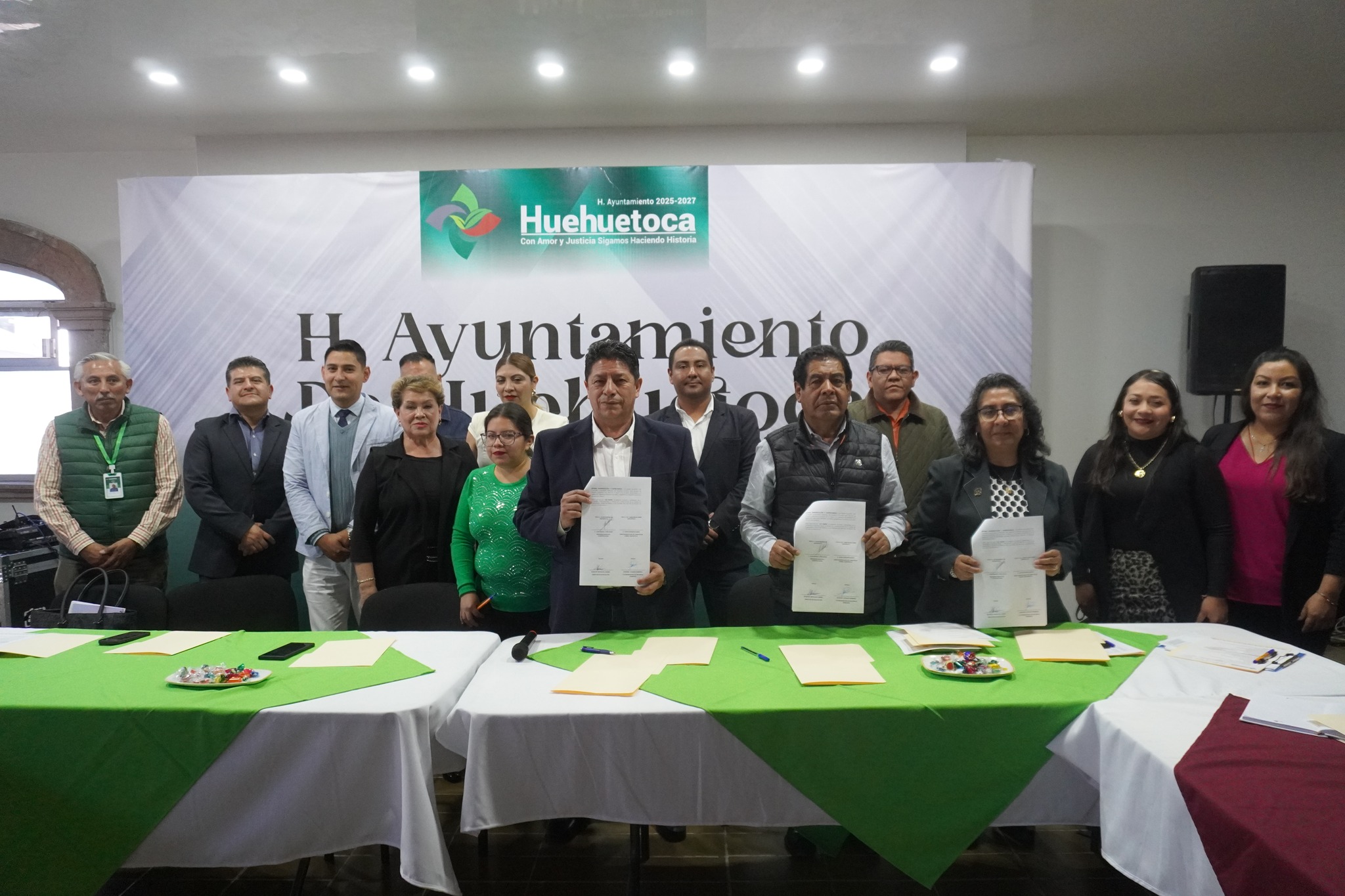 La Presidenta Municipal, Ofelia Antonio Sandoval, junto al Síndico, el Secretario del Ayuntamiento y los…