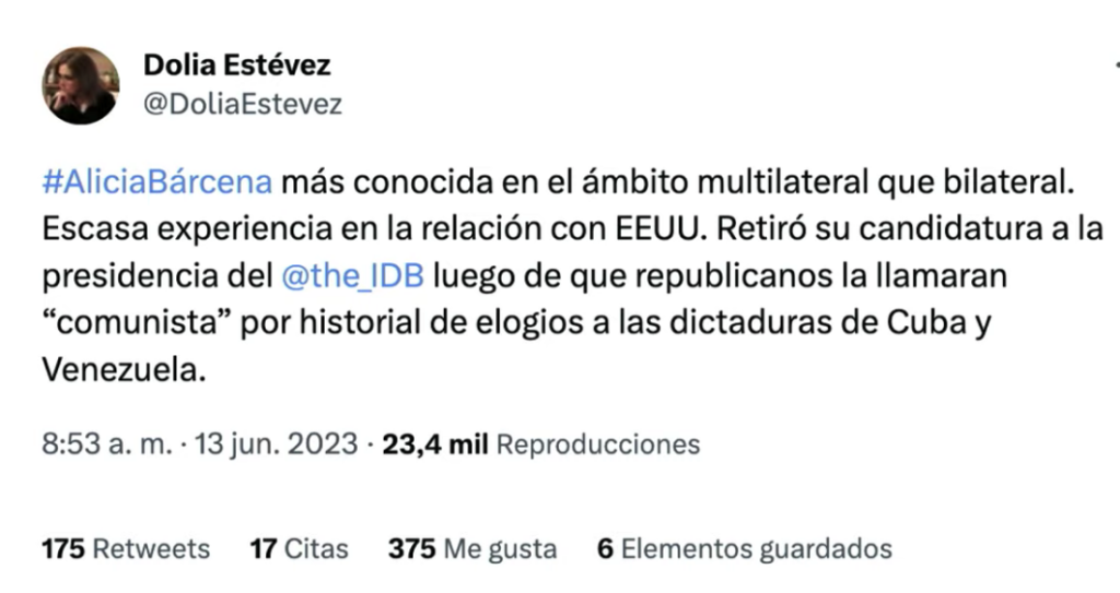 El presidente Andrés Manuel López Obrador reconoció la trayectoria de Alicia Bárcena, ante señalamientos de la comunicadora Dolia Estévez, por una presunta inconformidad de Estados Unidos ante la designación.
