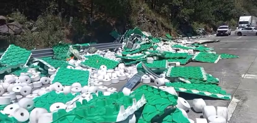 Se registró un fuerte accidente en la autopista México-Puebla, a la altura del kilómetro 61+500, en la zona de Río Frío. Un tráiler que transportaba rollos de hilo volcó tras perder el control, presuntamente debido al exceso de velocidad y la falta de precaución del conductor.