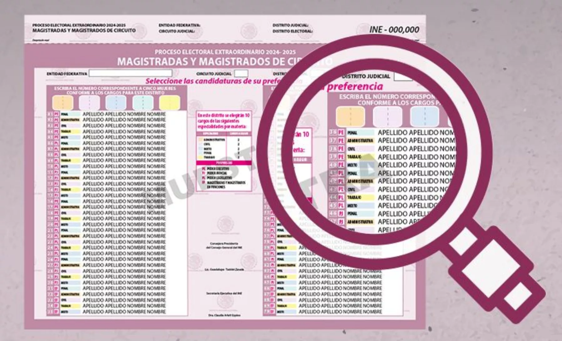 Los votantes recibirán al menos seis boletas, con la posibilidad de obtener más si también participan en elecciones locales extraordinarias para el Poder Judicial estatal. Cada boleta estará diferenciada por color según el cargo: