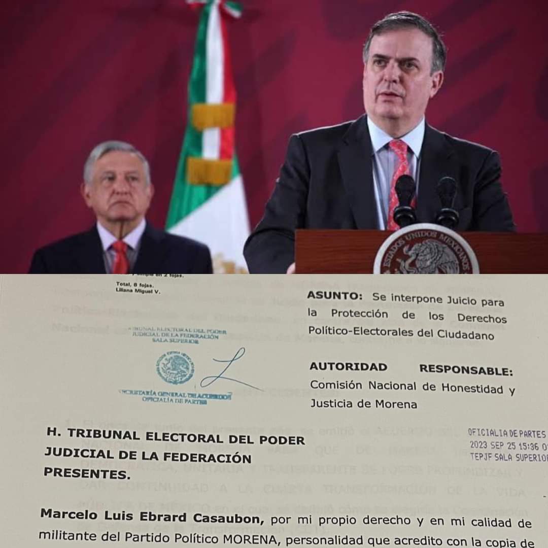 El excanciller Marcelo Ebrard impugnó el que la Comisión de Honor y Justicia de Morena no le haya respondido en un plazo de cinco días su queja contra el proceso interno de este partido ante la Sala Superior del Tribunal Electoral del Poder Judicial de la Federación.