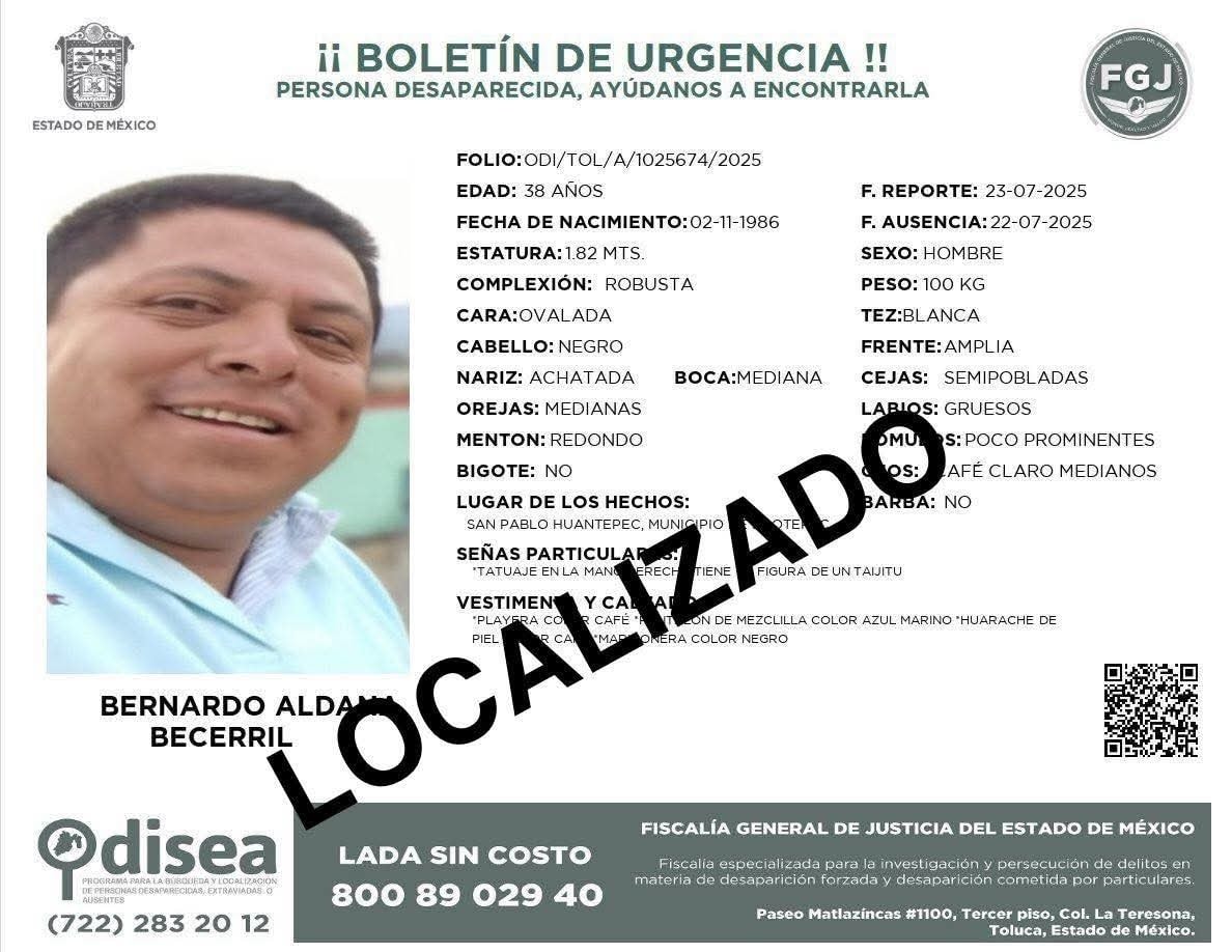 En una acción conjunta entre fuerzas estatales y federales, la Secretaría de Seguridad del Estado de México, en coordinación con la Guardia Nacional, logró la liberación de Bernardo Aldana Becerril, coordinador de la organización ACME Oficial, quien había sido privado de su libertad el pasado 22 de julio.