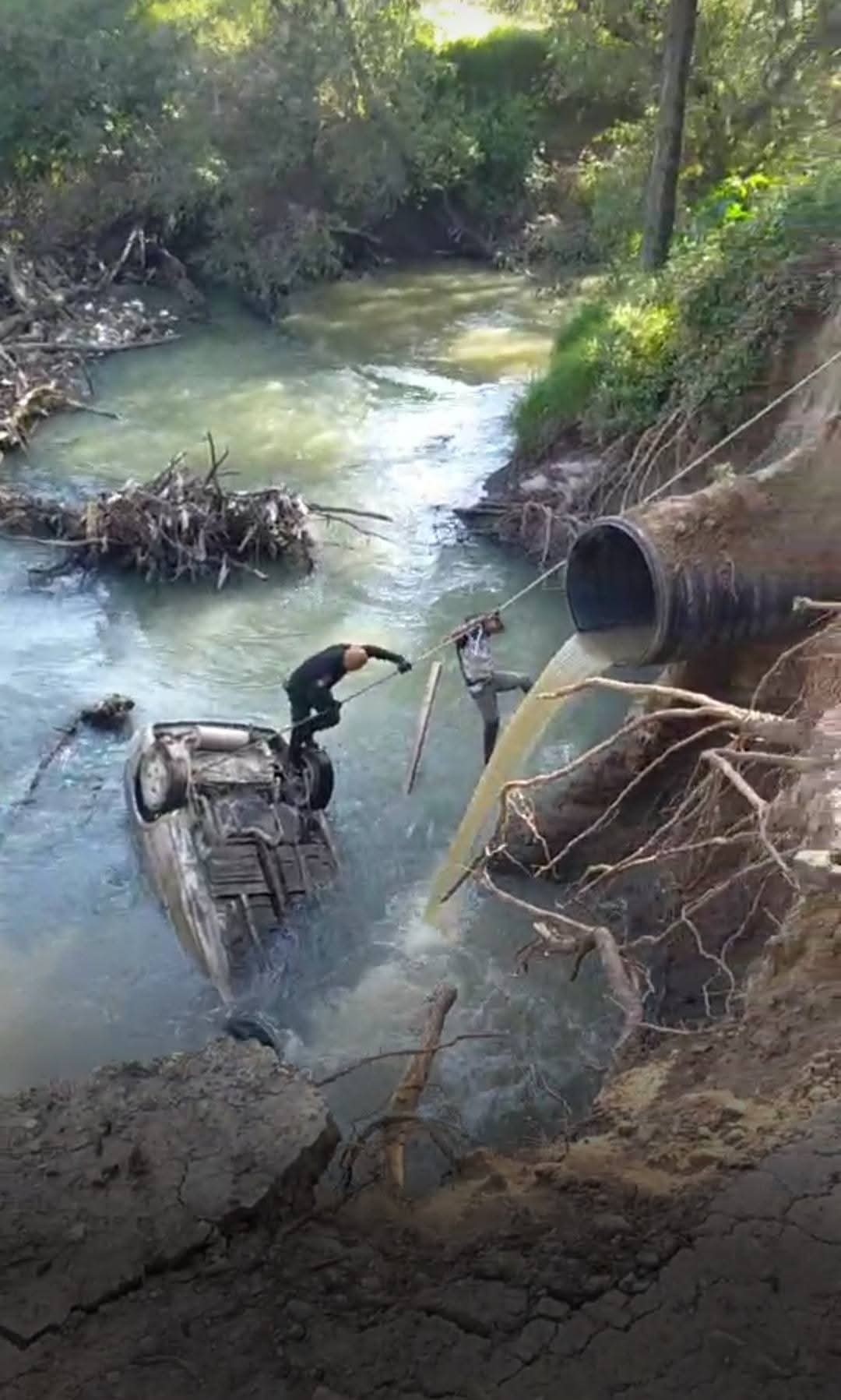 Vehículo cae a un cuerpo de agua en Tepojaco; vecinos y policías realizan rescate en Izcalli