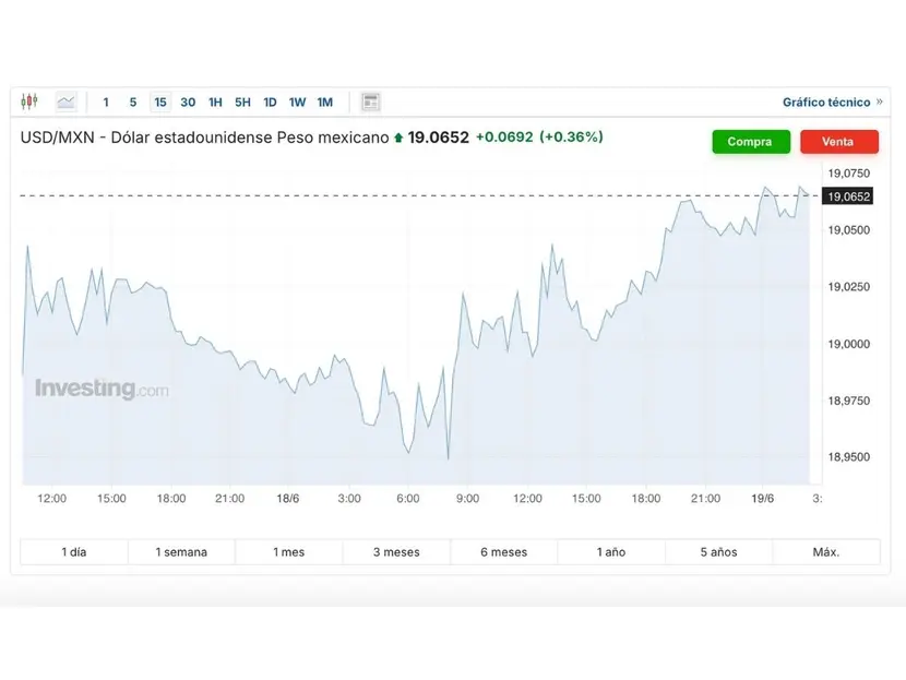Este jueves 19 de junio de 2025, el peso mexicano mostró un comportamiento volátil al iniciar la jornada con una leve ganancia, aunque terminó cediendo terreno frente al dólar estadounidense. El tipo de cambio abrió en 18.99 pesos por dólar, con un avance marginal del 0.02% respecto al cierre anterior, según datos de LSEG.