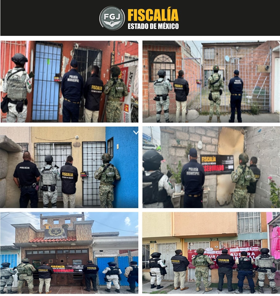 Las acciones se llevaron a cabo de manera simultánea en Atizapán de Zaragoza, Chimalhuacán, Coacalco, Ecatepec, Ixtapaluca, Lerma, Naucalpan, Ocuilan, San Antonio La Isla, Tlalmanalco, Tlalnepantla, Toluca, Tultitlán, Valle de Chalco y Zumpango, donde elementos de seguridad realizaron 20 cateos y 24 inspecciones en diferentes inmuebles.