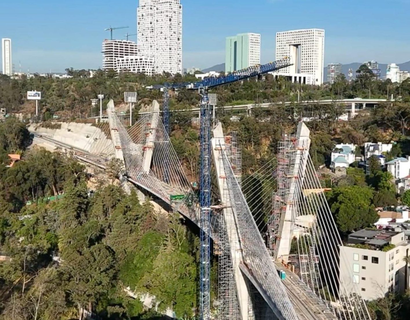 El mega puente curvo atirantado del Tren Interurbano México-Toluca, ubicado en el tramo Santa Fe…