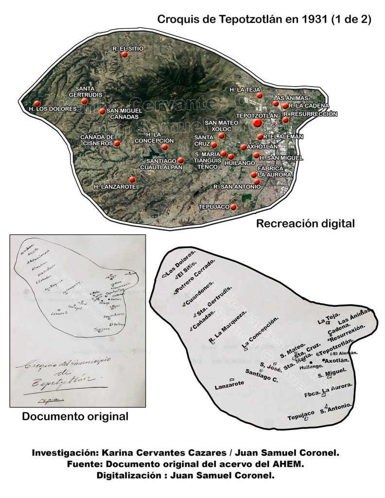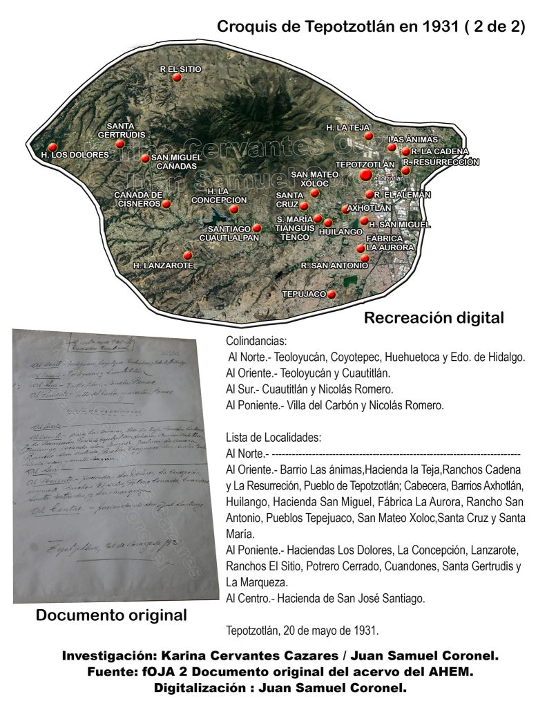 Hoy queremos presentarles un hallazgo de gran relevancia para el conocimiento de la historia de Tepotzotlán, un municipio cuyo desarrollo territorial ha sido crucial en la configuración del Valle de México. Este hallazgo se refiere a un mapa único que nos permite conocer cómo era la conformación territorial de Tepotzotlán antes de que “donara” parte de su territorio para la creación del municipio de Cuautitlán Izcalli. El croquis original, fechado en el año de 1931, ofrece una visión auténtica de cómo estaba compuesto el municipio en esa época, antes de los cambios que dieron forma al Tepotzotlán que conocemos hoy.
